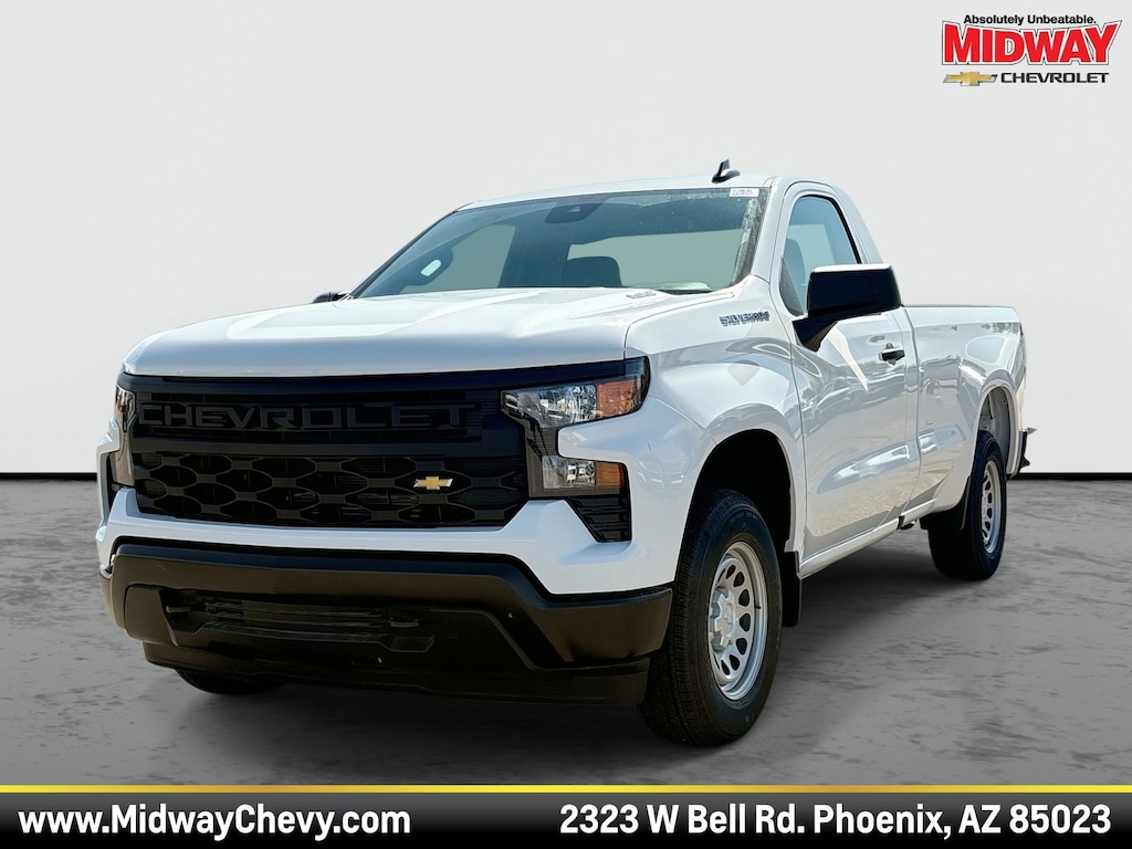 Introducing the 2026 Chevrolet Silverado 1500 Work Truck, a robust companion for those who demand more from their vehicle. This truck is engineered for individuals who value strength and reliability, featuring a powerful 4-cylinder engine that ensures efficiency without compromising on performance. The Silverado's Regular Cab design provides ample space for your gear, making it the perfect partner for both work and play. With its Summit White exterior, this truck exudes a sense of professionalism and readiness for any task. The long bed configuration offers extensive cargo capacity, ideal for transporting tools, equipment, or weekend adventure gear. The Silverado 1500’s automatic transmission and RWD drivetrain promise a smooth and controlled driving experience, whether you're navigating city streets or rugged terrain. Built to withstand the demands of daily use, this truck is more than just a vehicle; it's a reliable workhorse that stands ready to tackle any challenge. Experience the blend of durability and practicality with the 2026 Chevrolet Silverado 1500 Work Truck, where every drive is an opportunity to achieve more.