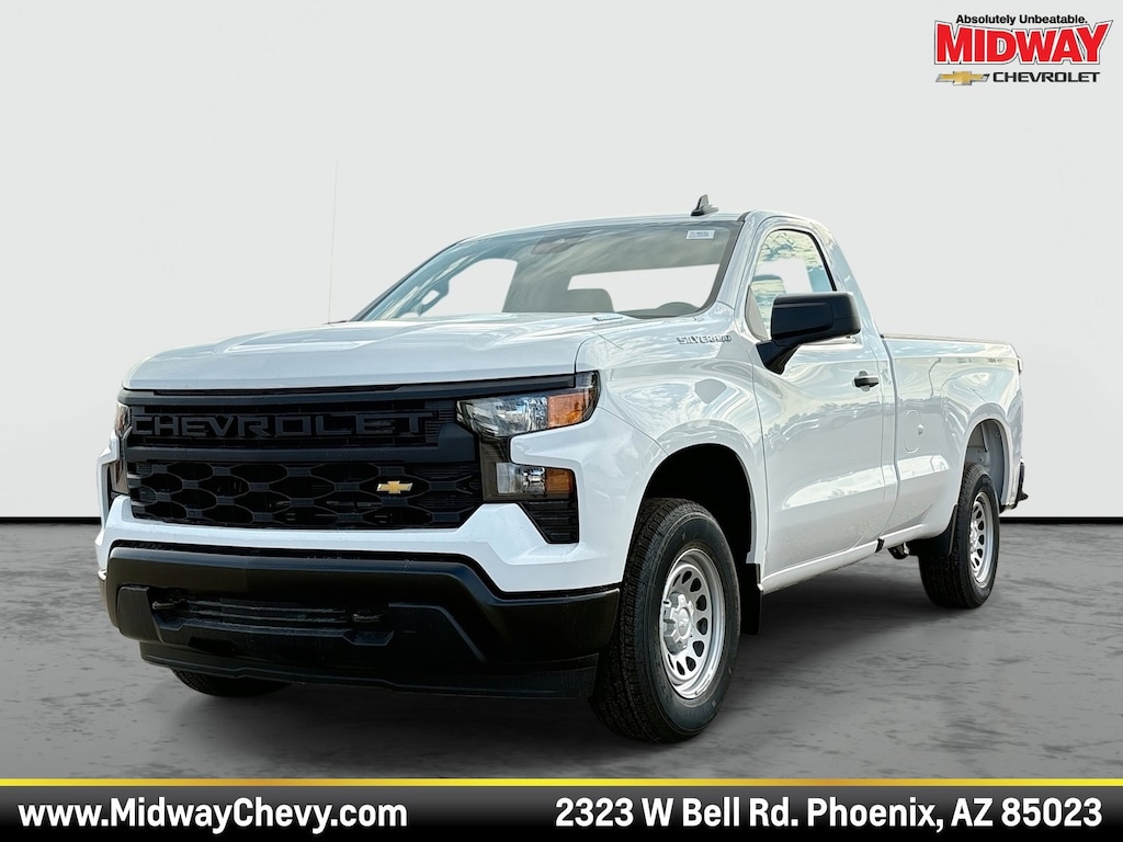 Discover the 2026 Chevrolet Silverado 1500 Work Truck, designed for those who demand more from their vehicles. This robust truck, with its Summit White exterior, is engineered for power and precision, making it a perfect companion for both work and play. The 4-cylinder engine provides efficient yet formidable performance, ensuring you can tackle any job with confidence. Its automatic transmission and RWD drivetrain offer seamless handling and enhanced control, whether you're navigating city streets or rugged terrains.
