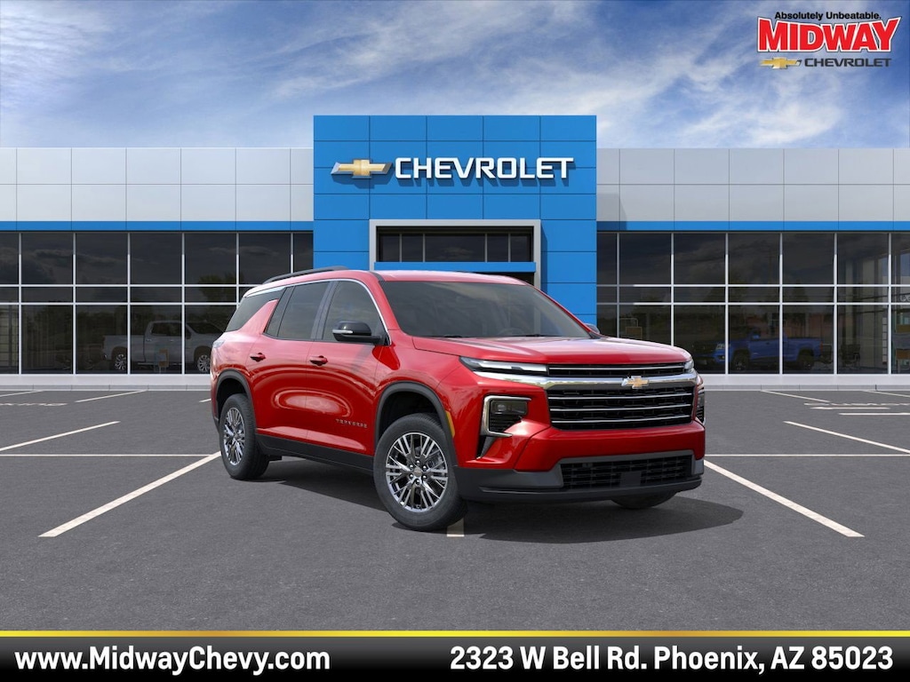 The 2026 Chevrolet Traverse AWD LT is crafted for those who seek a blend of style, performance, and versatility. Its Radiant Red Tintcoat exterior commands attention on the road, while the robust 4-cylinder engine ensures a dynamic driving experience. Perfect for both urban commutes and weekend getaways, this SUV offers all-wheel drive capability, providing confidence and control in any weather condition. The spacious interior accommodates up to seven passengers, making it ideal for family adventures or road trips with friends. Advanced safety features, including lane-keeping assist and adaptive cruise control, are designed to keep you and your loved ones secure on every journey. The intuitive infotainment system, complete with smartphone integration, keeps you connected and entertained, whether you're navigating city streets or exploring off-the-beaten-path destinations. With its automatic transmission, the Traverse offers a smooth and responsive ride, ensuring comfort and ease behind the wheel. Experience the perfect balance of practicality and sophistication with the 2026 Chevrolet Traverse AWD LT, a vehicle that redefines what it means to drive an SUV.