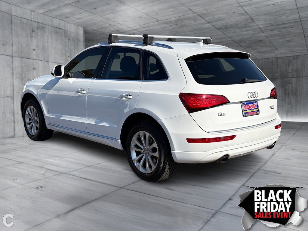 The 2015 Audi Q5 Premium, in its pristine Ibis White exterior, is more than just a vehicle—it's a statement of refined taste and performance. Designed for those who appreciate the finer things in life, this SUV offers a turbocharged 4-cylinder engine paired with an 8-speed automatic transmission, delivering a seamless and responsive drive. The all-wheel-drive system ensures confident handling in any weather, making it perfect for both urban adventures and weekend getaways. Inside, the Q5 envelops you in luxury with leather seats and a leather steering wheel, while the power-adjustable front seats provide personalized comfort. The panoramic sunroof invites natural light, enhancing every journey. Stay connected effortlessly with Bluetooth and enjoy your favorite tunes through the MP3-compatible sound system. Safety is paramount, with features like brake assist, stability control, and a comprehensive airbag system. The Q5's sleek design is complemented by practical features such as a power liftgate and rain-sensing wipers, ensuring convenience at every turn. Experience the perfect harmony of style, performance, and practicality with this exceptional Audi Q5 Premium.