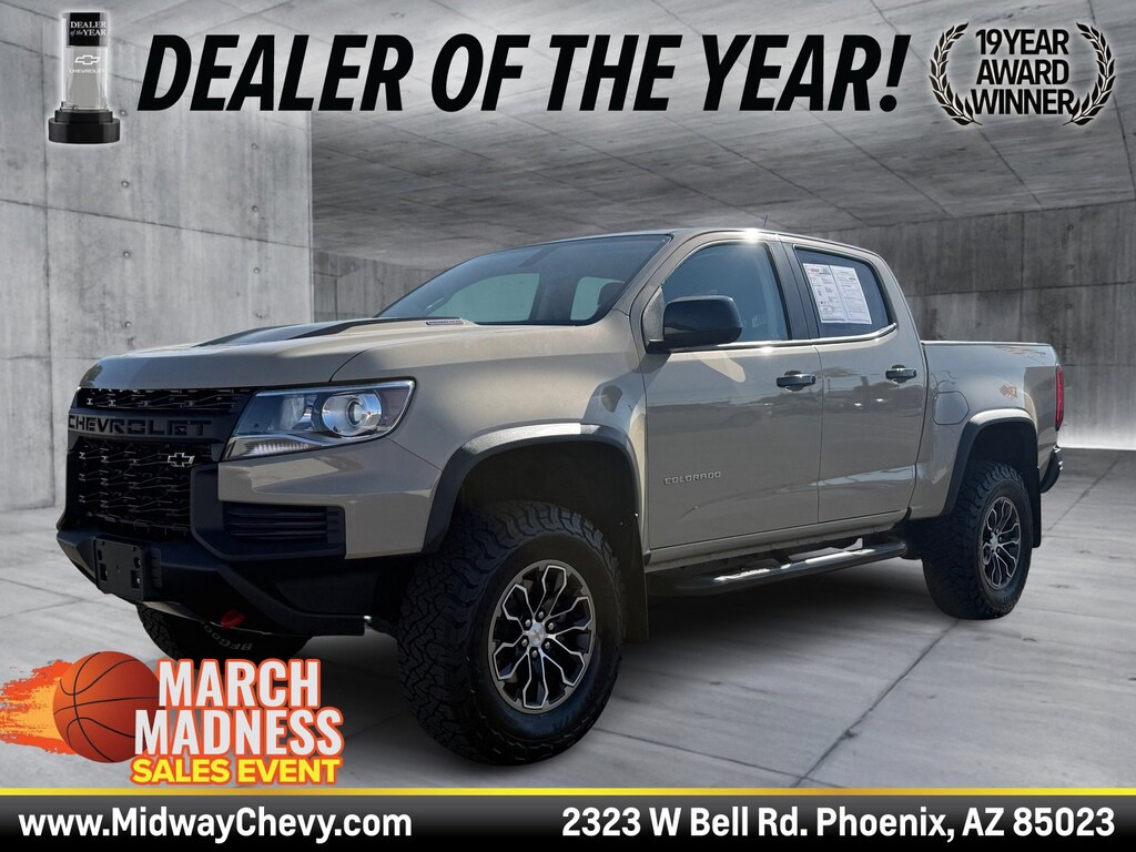 Conquer Every Terrain with the 2021 Chevrolet Colorado 4WD ZR2: Adventure Awaits in Sand Dune Metallic, Powered by a 2.8L Duramax Turbodiesel Engine.Experience the thrill of off-road capability with the 2021 Chevrolet Colorado 4WD ZR2, a robust machine designed for those who crave adventure. Its 2.8L Duramax Turbodiesel engine delivers impressive torque and efficiency, making it ideal for both rugged trails and city streets. The Sand Dune Metallic exterior ensures you stand out, whether you're navigating rocky paths or cruising downtown. This crew cab pickup offers a spacious interior with leather seats, ensuring comfort for every journey. Heated front seats and a heated steering wheel provide warmth during chilly excursions, while the power-adjustable seats offer personalized comfort. The ZR2's locking/limited slip differential and all-terrain tires provide superior traction and control, allowing you to tackle any terrain with confidence. Safety is paramount, with features like stability control, traction control, and a suite of airbags to protect you and your passengers. The back-up camera and tow hooks enhance convenience and utility, making this truck as practical as it is adventurous. With smart device integration and a WiFi hotspot, stay connected no matter where the road takes you. The 2021 Chevrolet Colorado 4WD ZR2 is more than a truck it's your ticket to exploration.Be sure to call or visit Midway Chevy to discover more. Your new favorite vehicle awaits - don't let someone else drive it home!?