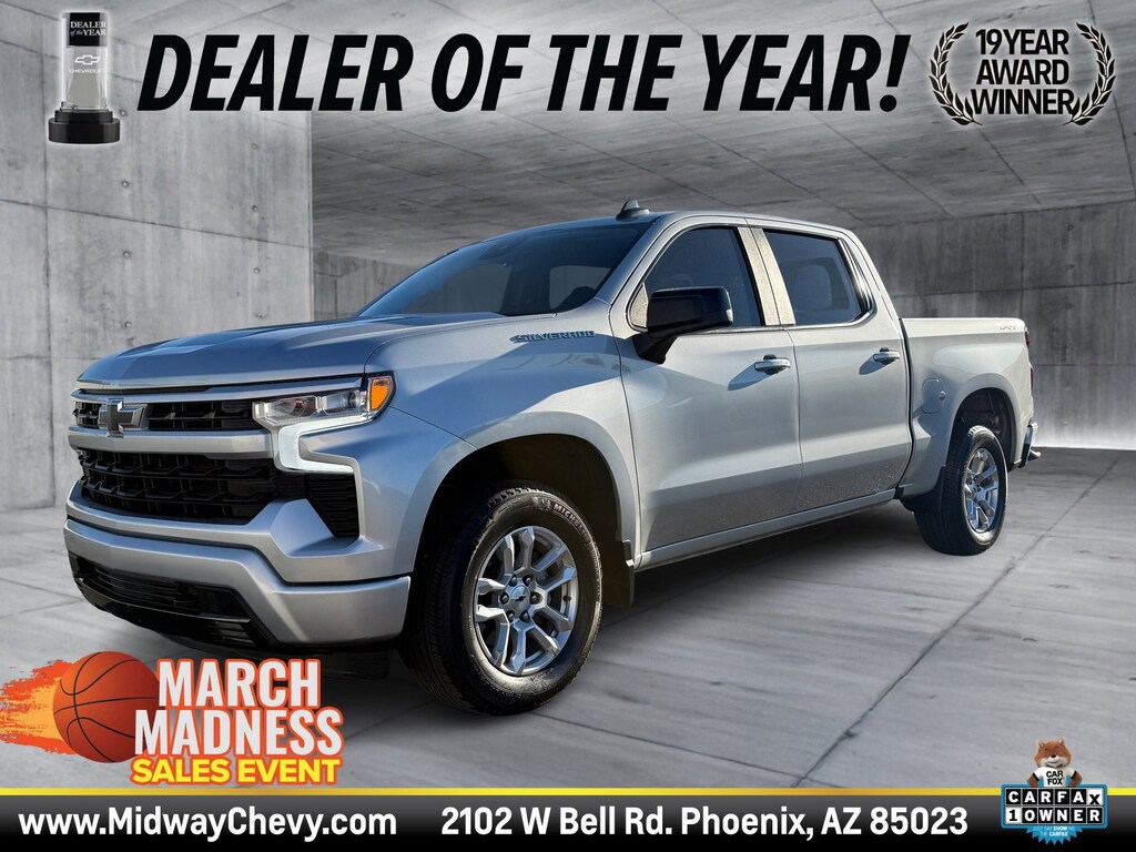 Command the Road with Power and Precision: Discover the 2022 Chevrolet Silverado 1500 RST, a Used Truck That Redefines Strength and Versatility.Experience the unparalleled performance of the 2022 Chevrolet Silverado 1500 RST, a used powerhouse that combines rugged strength with modern sophistication. Beneath its Silver Ice Metallic exterior, the 8-cylinder engine roars to life, delivering robust power for every journey. The 10-speed automatic transmission ensures smooth transitions, while the 4x4 drivetrain provides exceptional traction and control, making it ideal for both city streets and off-road adventures.Safety is paramount with features like Front Collision Mitigation, Lane Departure Warning, and Automatic Highbeams, offering peace of mind on every drive. The Crew Cab design provides ample space for passengers, while the short bed offers versatile cargo solutions for all your gear. Enjoy the convenience of Remote Engine Start and Keyless Entry, making every start seamless.Inside, the Silverado 1500 RST boasts a leather steering wheel and a Driver Adjustable Lumbar seat for ultimate comfort. Stay connected with Bluetooth, WiFi Hotspot, and Smart Device Integration, ensuring you’re always in touch. With its commanding presence and advanced features, the Silverado 1500 RST is more than just a truck; it’s a statement of capability and style.Be sure to call or visit Midway Chevy to discover more. Your new favorite vehicle awaits - don't let someone else drive it home!?