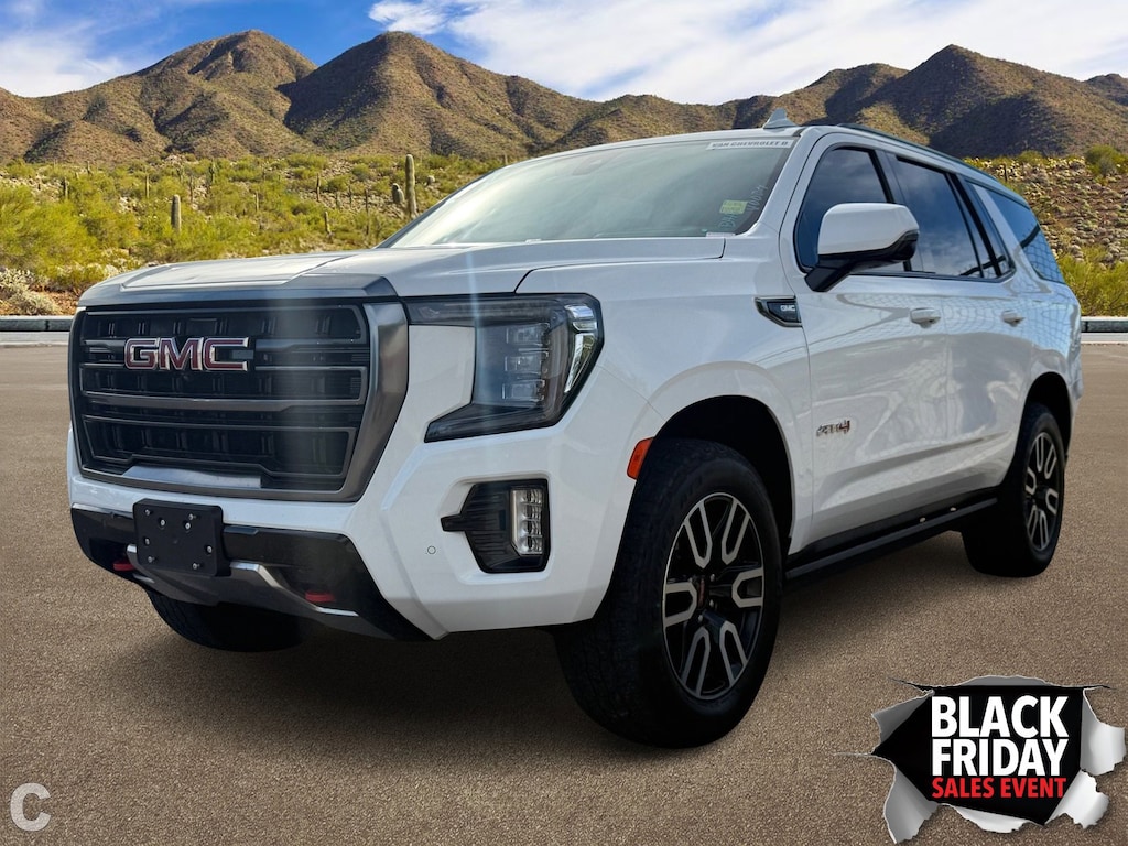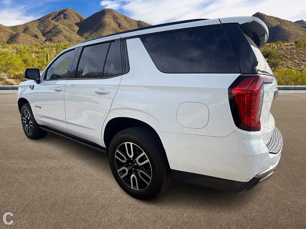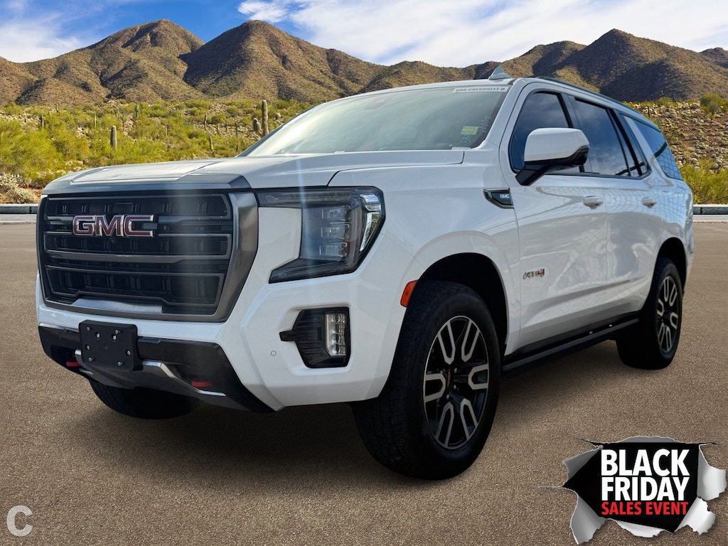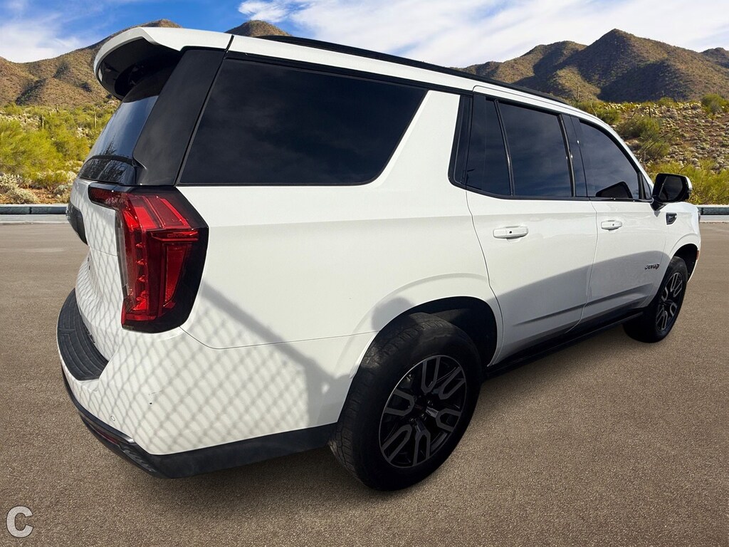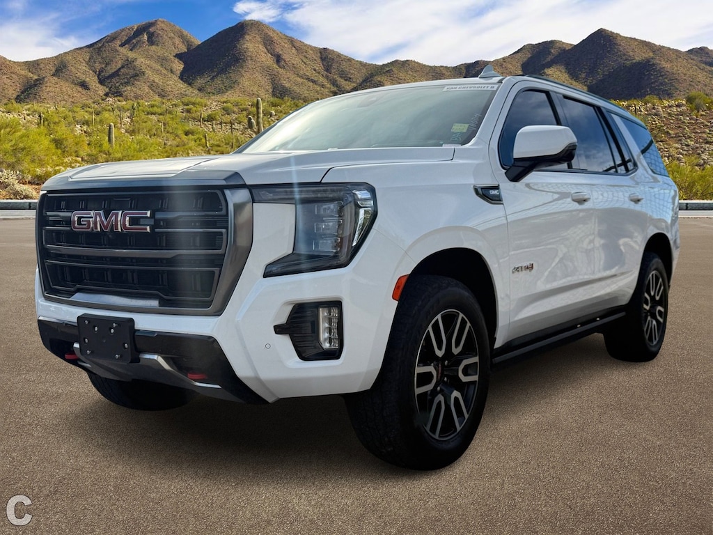Experience the thrill of the road with the 2021 GMC Yukon AT4, a used powerhouse that blends rugged capability with premium comfort. This Summit White SUV is engineered for those who crave adventure without compromising on style or safety. The robust 8-cylinder engine paired with a 10-speed automatic transmission ensures a smooth, commanding drive, whether you're navigating city streets or tackling off-road trails. The Yukon AT4's 4x4 drivetrain, coupled with all-terrain tires and running boards, promises exceptional handling and stability across diverse landscapes.