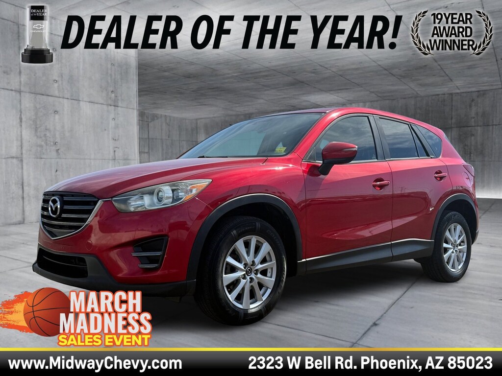 Experience the Perfect Blend of Style and Performance with the 2016 Mazda CX-5 Sport in Soul Red MetallicStep into the world of refined driving with this 2016 Mazda CX-5 Sport, designed for those who crave both style and substance. This SUV, with its striking Soul Red Metallic exterior, is more than just a vehicle; it's a statement. The 4-cylinder engine paired with a 6-speed automatic transmission ensures a smooth and responsive drive, making every journey a pleasure. The front-wheel-drive system enhances fuel efficiency while maintaining exceptional handling on the road.Safety is paramount with features like Automatic Headlights, Brake Assist, and a comprehensive airbag system, including Front and Rear Head Air Bags. The integrated turn signal mirrors and stability control add an extra layer of security, giving you peace of mind on every trip.Inside, the Mazda CX-5 Sport offers comfort with cloth bucket seats and a pass-through rear seat, providing flexibility for passengers and cargo alike. The intuitive keyless entry and start system, along with Bluetooth connectivity, keep you connected and in control. Aluminum wheels and a rear spoiler add a touch of sportiness, making this SUV a perfect companion for those who value both performance and style. Discover the joy of driving with the Mazda CX-5 Sport today.Be sure to call or visit Midway Chevy to discover more. Your new favorite vehicle awaits - don't let someone else drive it home!?