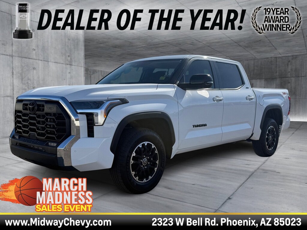 Conquer Every Terrain with Confidence: Discover the 2024 Toyota Tundra 4WD SR5 Crew Cab in Celestial Silver MetallicStep into the 2024 Toyota Tundra 4WD SR5, where power meets precision in a stunning Celestial Silver Metallic finish. Designed for those who demand more from their truck, this vehicle is equipped with a robust V6 Cylinder Engine and a turbocharged powertrain, ensuring you have the muscle to tackle any adventure. The 10-speed automatic transmission with dual shift mode provides seamless transitions, enhancing your driving experience both on and off the beaten path.Safety is paramount with features like Front Collision Mitigation, Lane Departure Warning, and Automatic Highbeams, offering peace of mind on every journey. The adaptive cruise control and lane-keeping assist technology make highway driving a breeze, while the advanced traction and stability control systems ensure you remain in command, no matter the conditions.Inside, the Crew Cab offers spacious comfort with bucket seats and a pass-through rear seat, perfect for accommodating both passengers and gear. The smart device integration and WiFi hotspot keep you connected, while the back-up camera and keyless start add convenience to your daily routine. Whether you're towing with the integrated tow hitch or exploring new trails, the Tundra 4WD SR5 is your ultimate partner in adventure.Be sure to call or visit Midway Chevy to discover more. Your new favorite vehicle awaits - don't let someone else drive it home!?